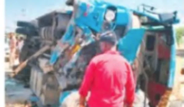 भीलवाड़ा: जिले में शाहपुरा थाना क्षेत्र में रायपुर चौराहे के पास मंगलवार दोपहर गहरे गड्ढे से बचने के प्रयास में एक तेज रफ्तार निजी बस अनियंत्रित हो गई और सामने से आ रही कार से जा टकराई। टक्कर इतनी भीषण थी कि कार का अगला हिस्सा पूरी तरह पिचक गया, जबकि बस सड़क किनारे पलट गई। हादसे में करीब 37 यात्री घायल हो गए, जिनमें से पांच की हालत गंभीर होने पर भीलवाड़ा रेफर किया गया।
