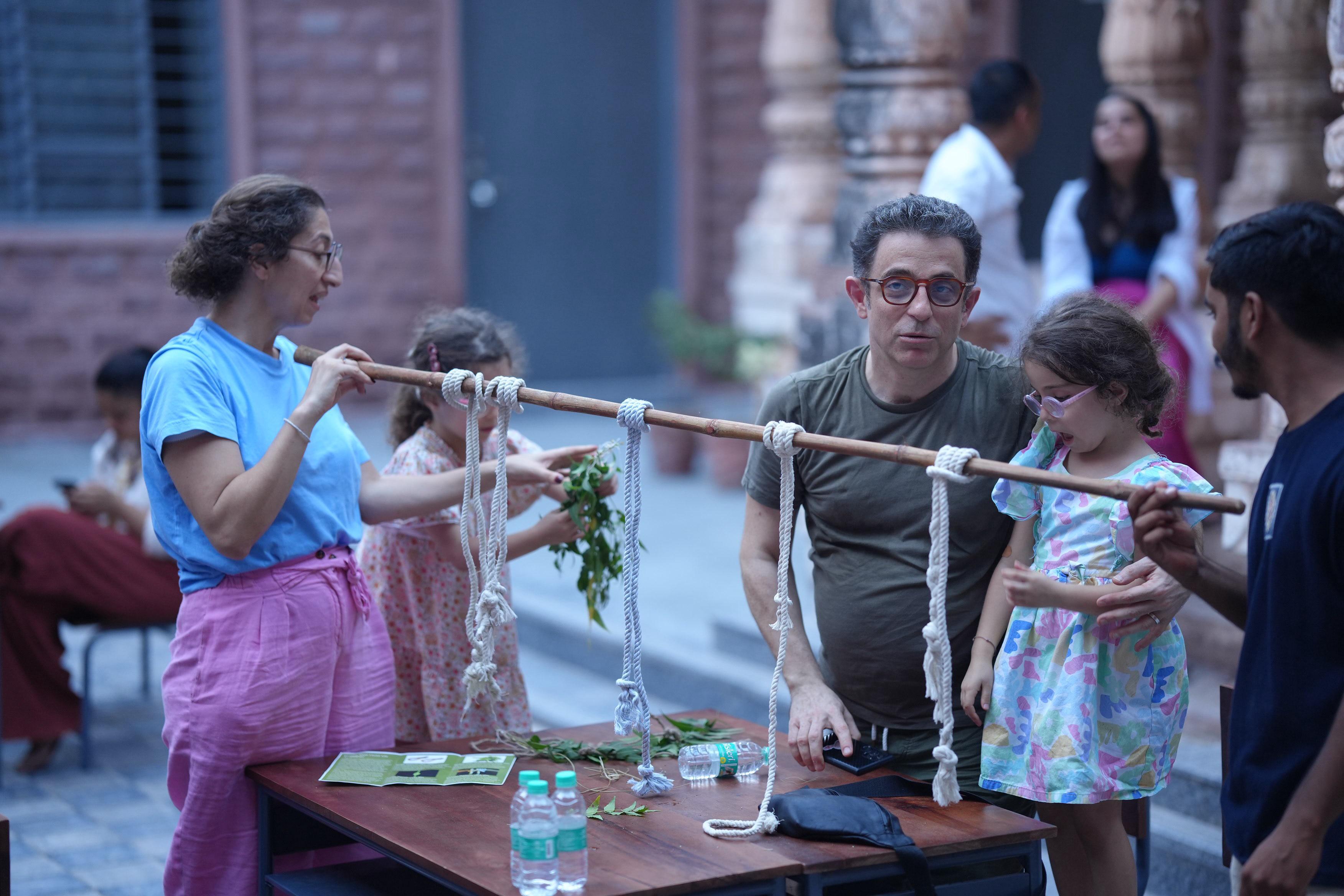 शाम ढलते ही पुराना शहर सहभागिता-आधारित कार्यशालाओं और सांस्कृतिक गतिविधियों से जीवंत हो उठा। राजमहल गर्ल्स गवर्नमेंट स्कूल में पाटी x लैंड टीचिंग फेलोज़ ने ‘सांठ गांठ’ वर्कशॉप का आयोजन किया, जिसमें पारंपरिक गांठ लगाने की तकनीक को सांस्कृतिक जुड़ाव के रूप में प्रस्तुत किया गया। वहीं श्री सुमेर स्कूल में पांचवी पीढ़ी के इत्र-निर्माता सक्षम अरोड़ा ने आगंतुकों को शिल्पकारी इत्तर-निर्माण की दुनिया से परिचित कराया। उन्होंने दुर्लभ सामग्रियों और 1904 से चली आ रही परफ्यूमरी परंपराओं को साझा किया।